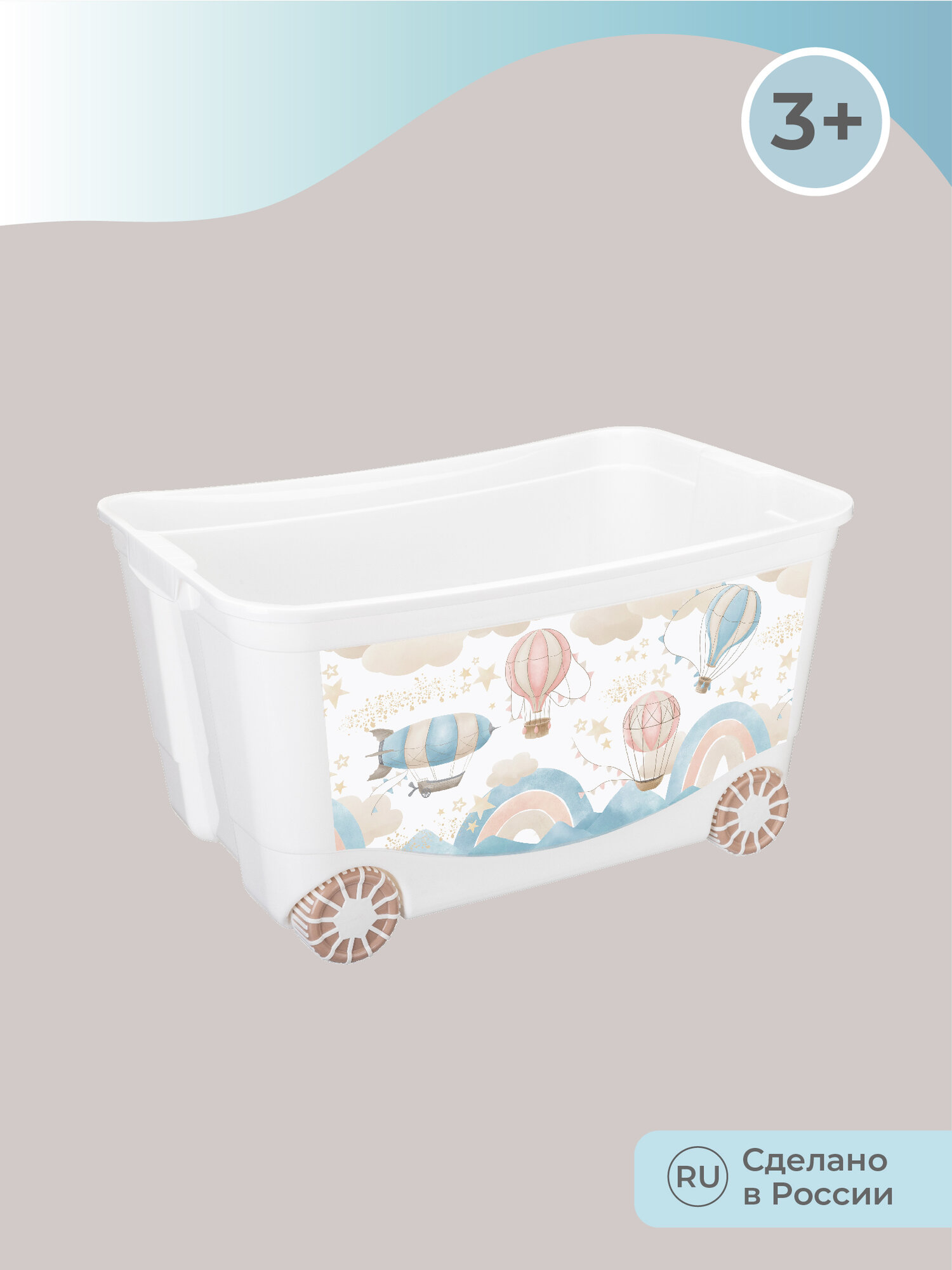 Ящик для игрушек на колесах с декором «Воздушные шары» цвет темно-бежевый 58*39*33,5см, 45л