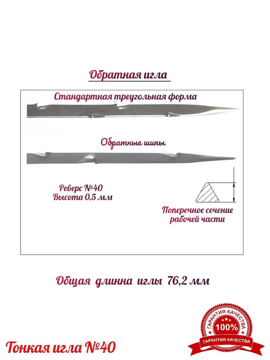 Купить Обратные тонкие иглы Кофанов для валяния № 40 из калёной стали с реверсивной формой зубцов