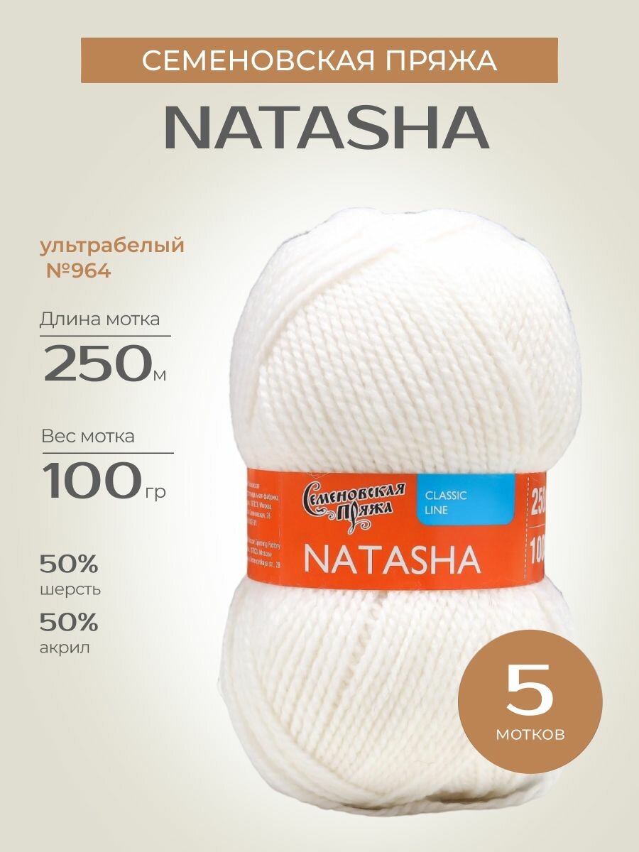 Пряжа Семеновская пряжа Natasha (964), ультрабелый 5 шт. по 100 г