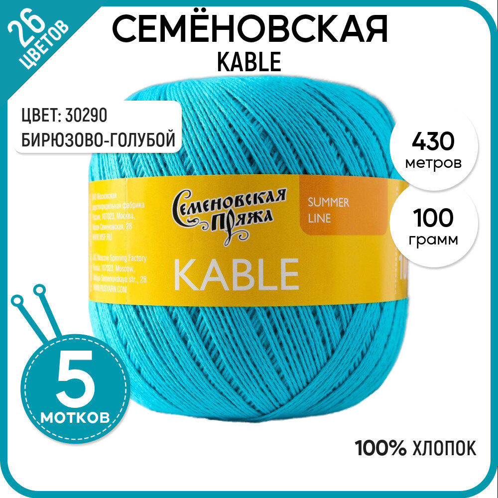 Пряжа Семеновская пряжа Kable (30290), бирюзово-голубой 5 шт. по 100 г
