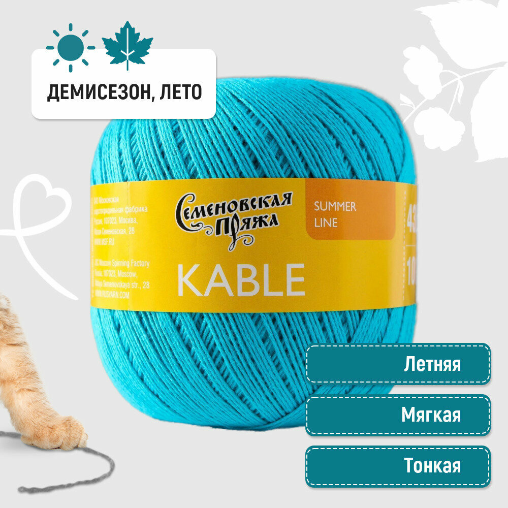 Пряжа Семеновская пряжа Kable (30493), аква 5 шт. по 100 г