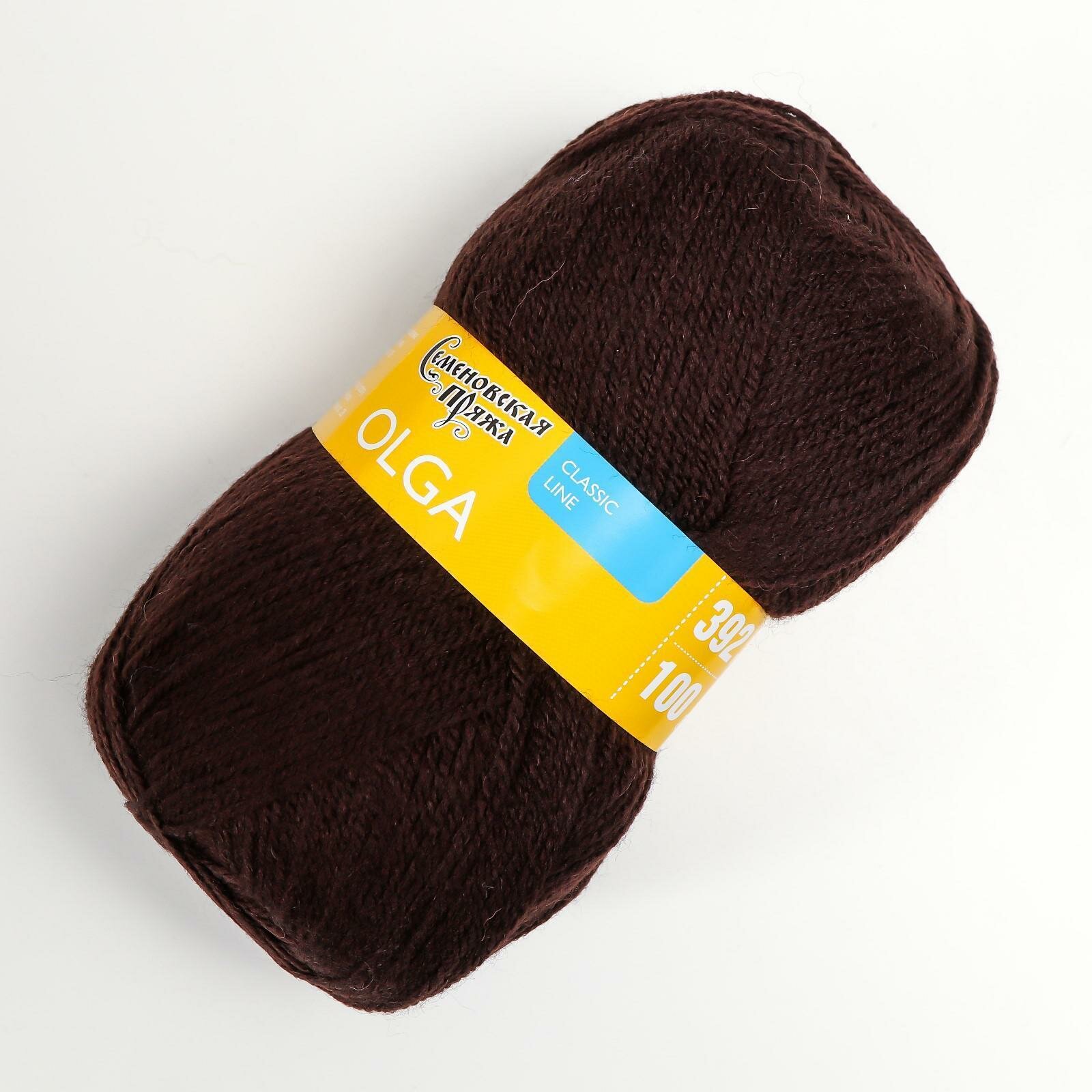 Пряжа Семеновская Olga (Ольга ПШ) кофе_NEW (13389), 50%шерсть/50%акрил, 392м, 100г, 1шт