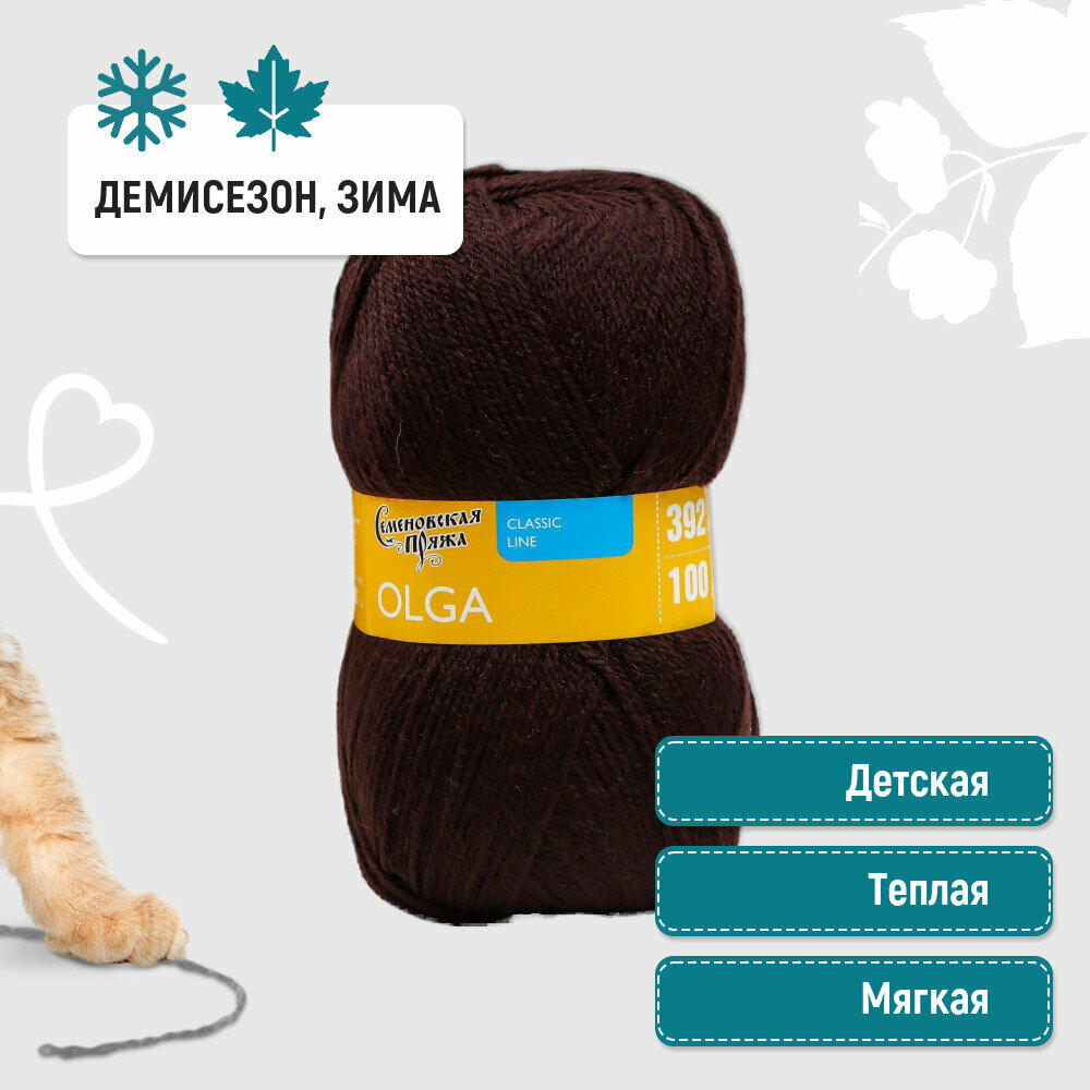 Пряжа Семеновская Olga (Ольга ПШ) какао_NEW (13378), 50%шерсть/50%акрил, 392м, 100г, 1шт
