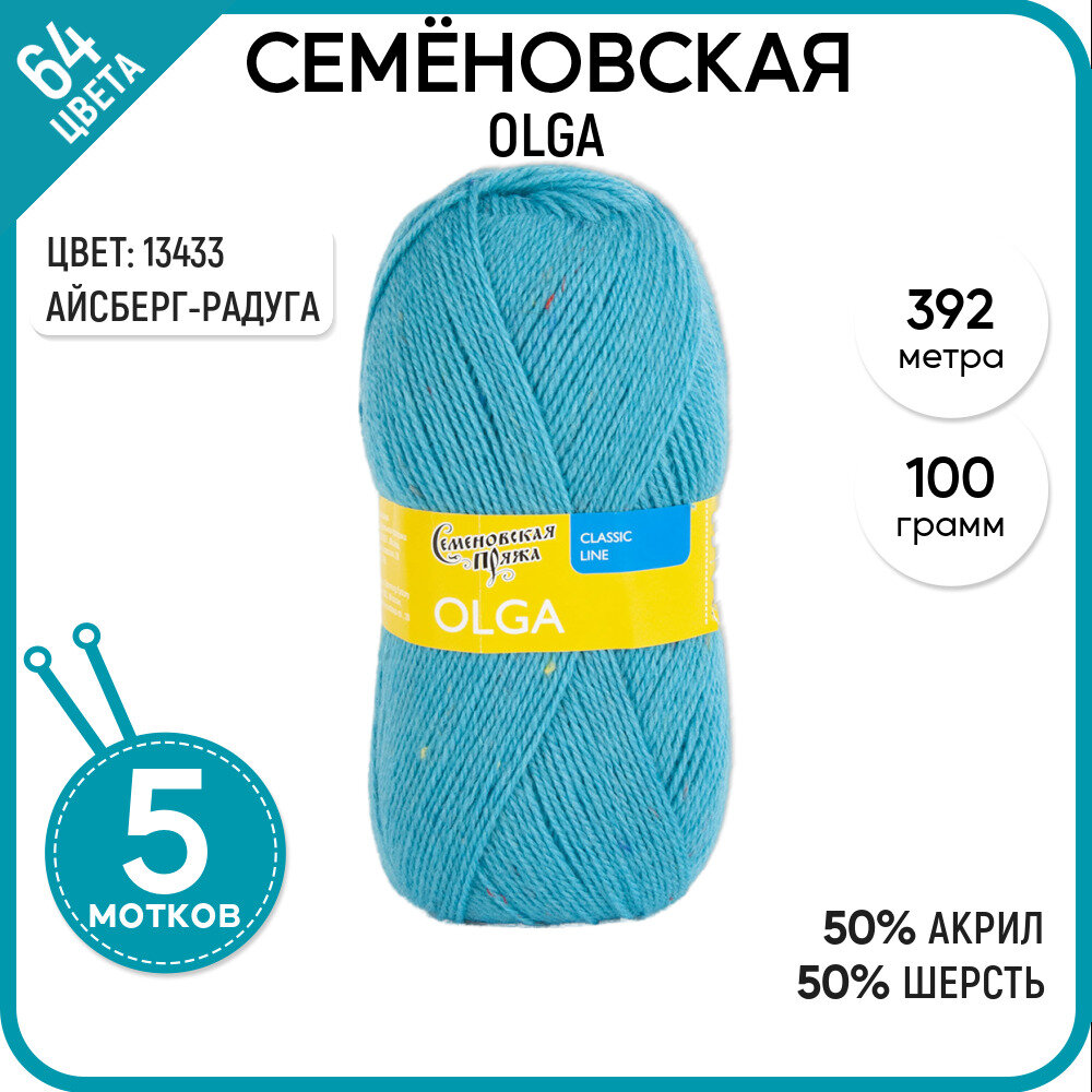 Пряжа Семеновская Olga (Ольга ПШ) айсберг_NEW (13390), 50%шерсть/50%акрил, 392м, 100г, 5шт