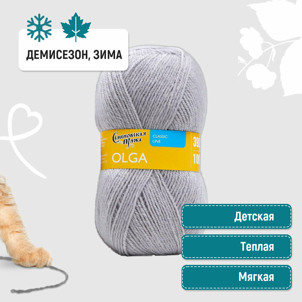 Пряжа Семеновская Olga (Ольга ПШ) айсберг_NEW (13390), 50%шерсть/50%акрил, 392м, 100г, 5шт
