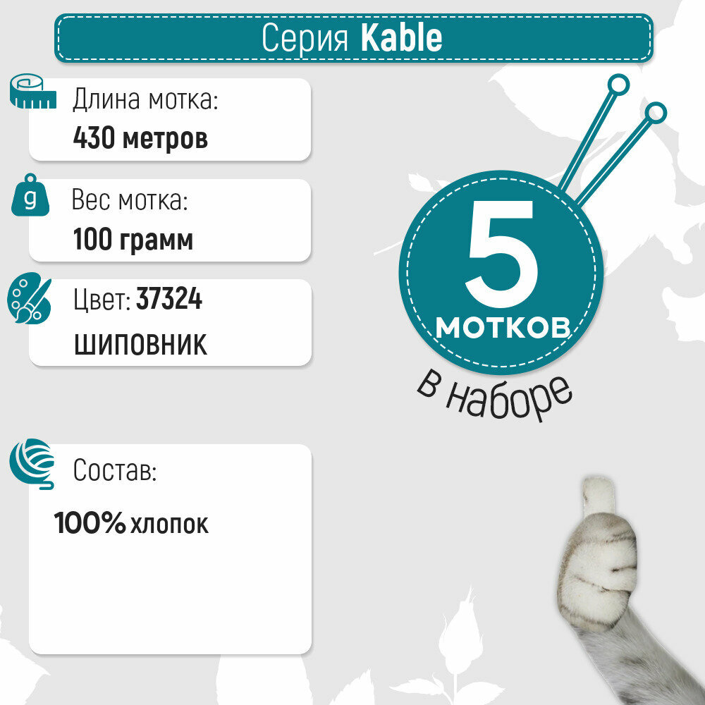 Пряжа Семеновская Kable (Кабле) шиповник_x1 (37324), 100%хлопок, 430м, 100г, 5шт