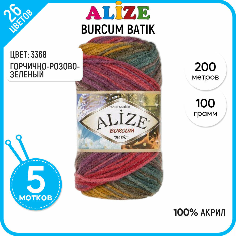 Купить Пряжа Alize Burcum Batik желто-коричнево-розово-малиновый-олива-хаки (3368), 100%акрил, 210м, 100г, 5шт