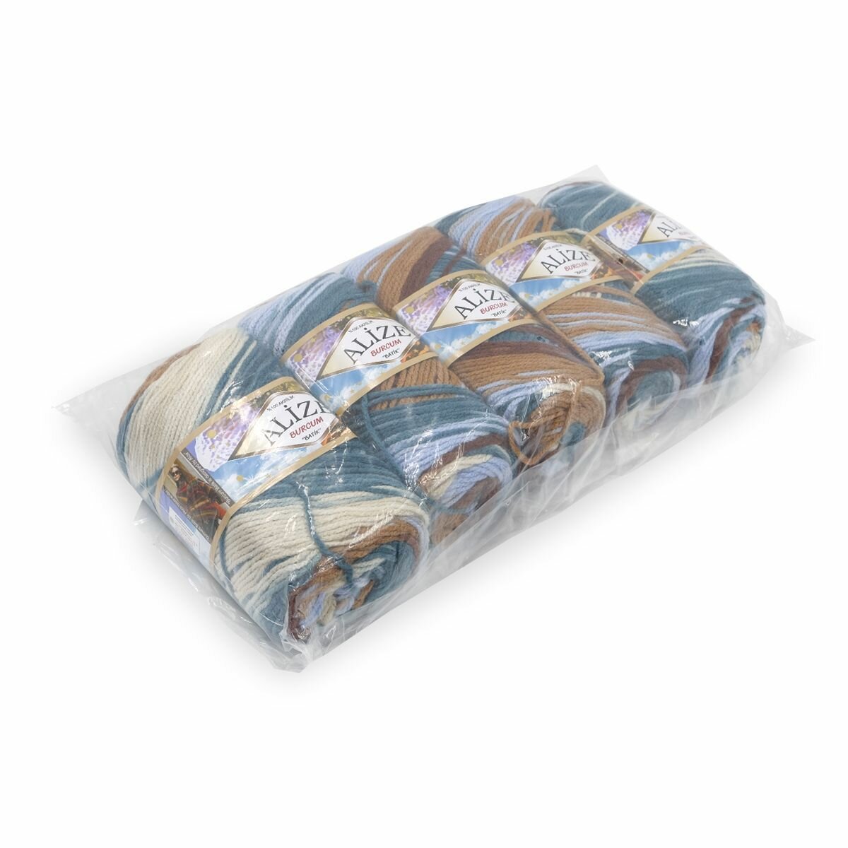 Купить Пряжа Alize Burcum Batik молочный-синий-голубой-коричневый (7648), 100%акрил, 210м, 100г, 5шт