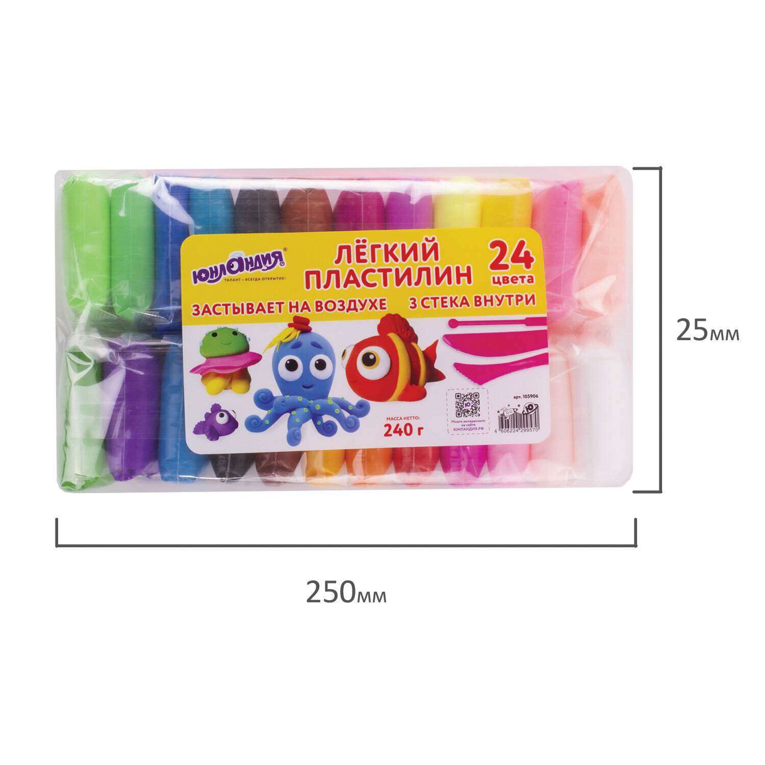 | Комплектация | Пластилин - 24 цвета. Стеки - 3 шт. |