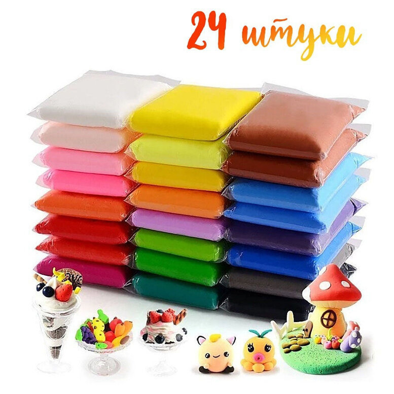 Супер легкий пластилин для детей / Воздушный пластилин застывающий, 24 цвета / Super Lighting Clay