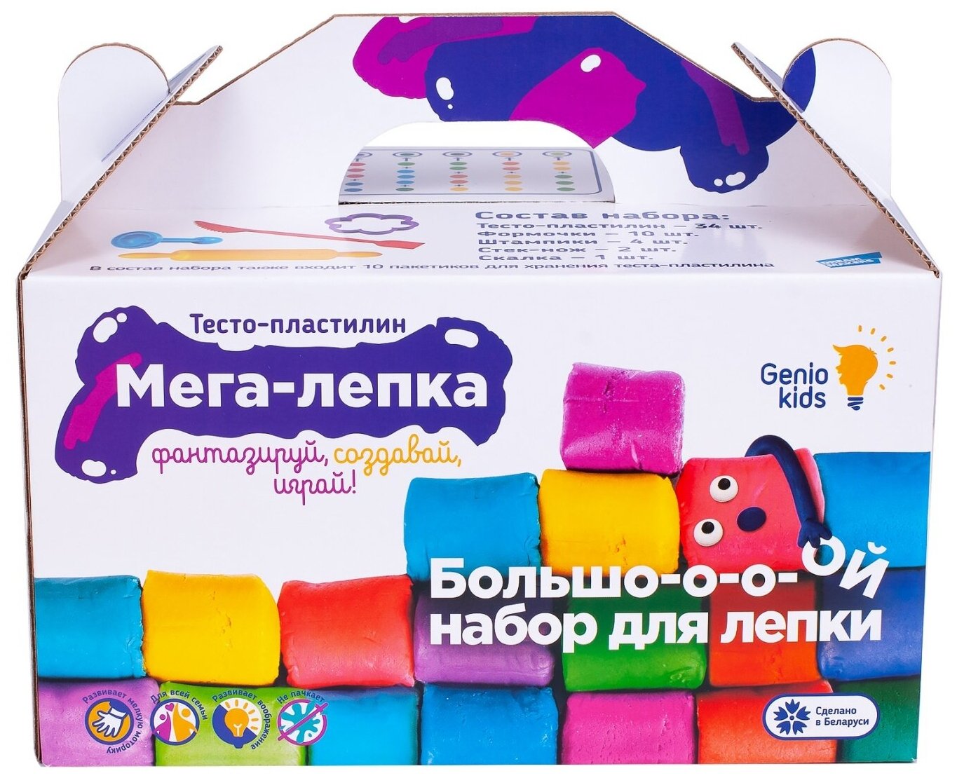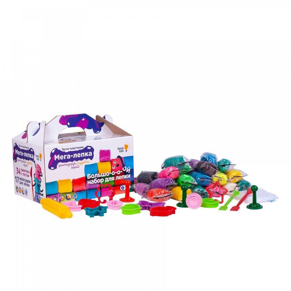 Набор для лепки мега-лепка 34 пакетика с тестом и 17 аксессуаров GENIO KIDS TA1084