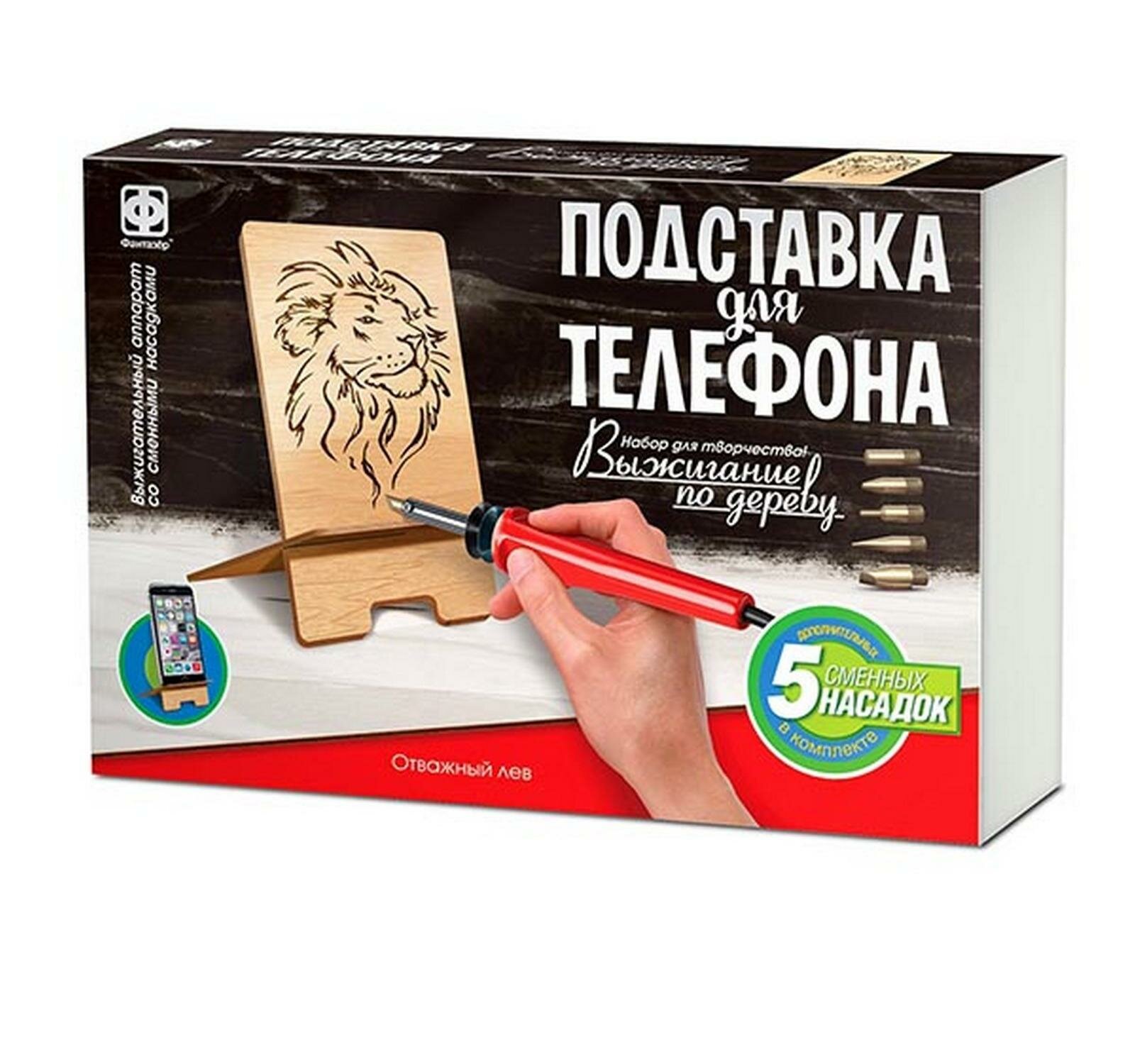 Набор для выжигания Подставка для телефона Отважный лев - Фантазёр интересное: