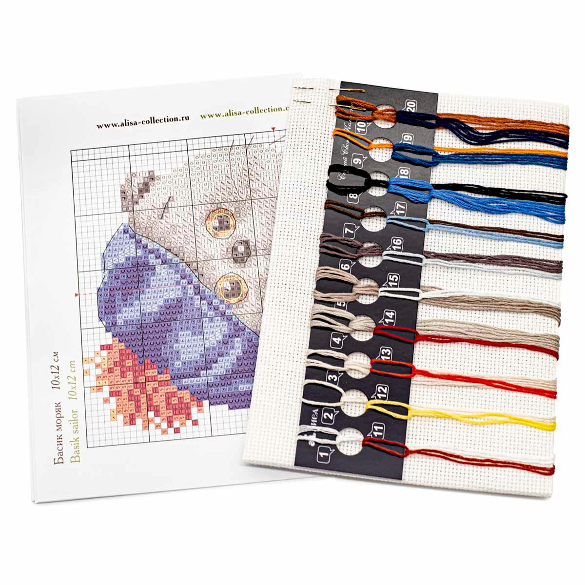 Набор для вышивания крестом Алиса "Басик-моряк", 10х12 см, Творческий набор с комплектом качественных ниток мулине