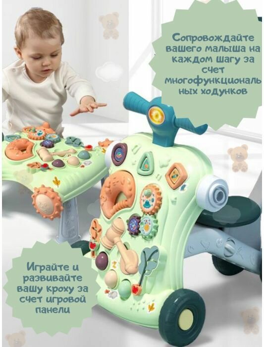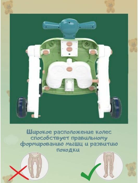 Многофункциональные ходунки-каталка 6в1 Luxmom 999M, цвет зеленый
