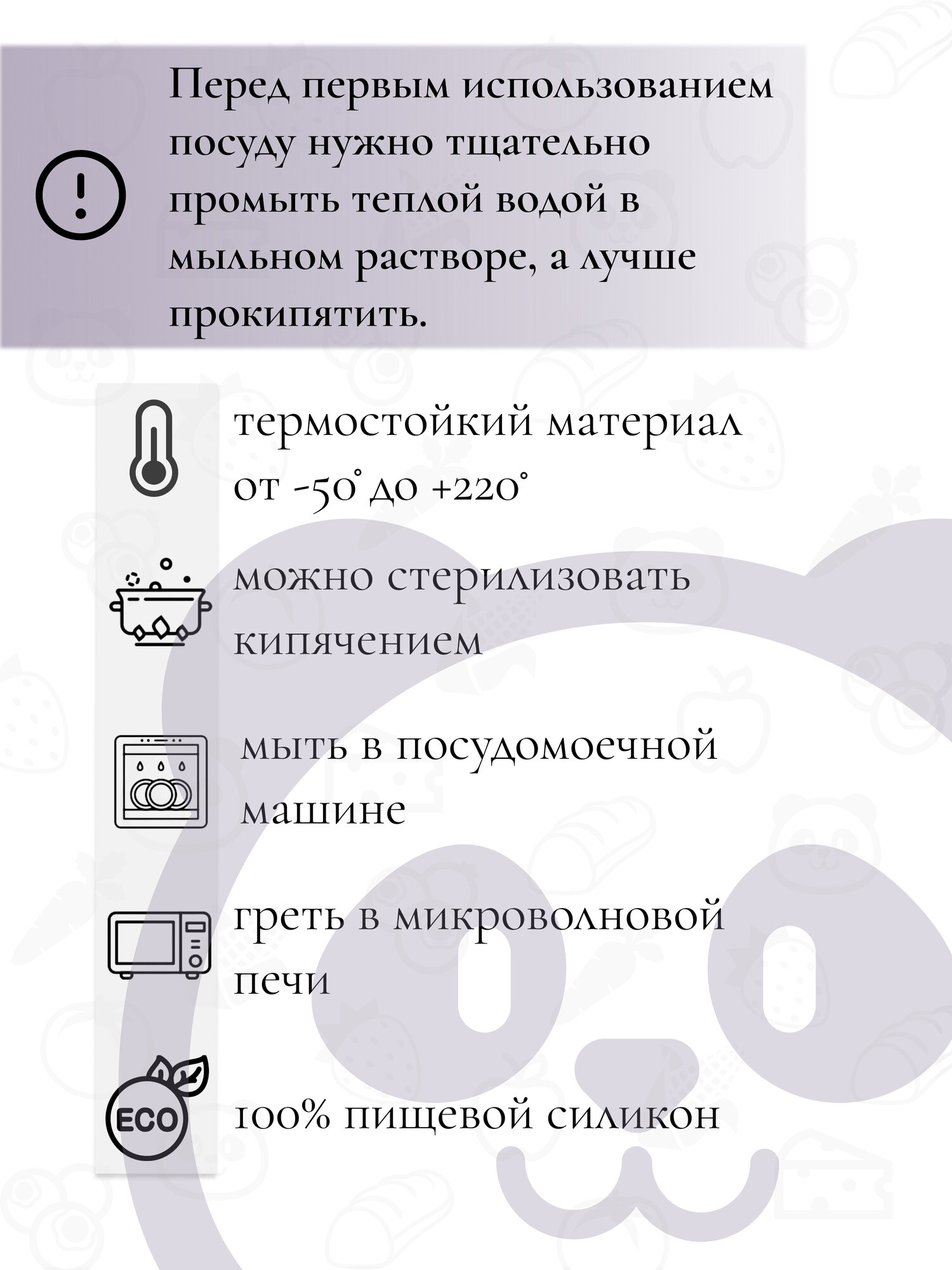 | Особенности | использование в СВЧ / можно мыть в посудомоечной машине / можно стерилизовать / на присоске / тарелка с секциями |