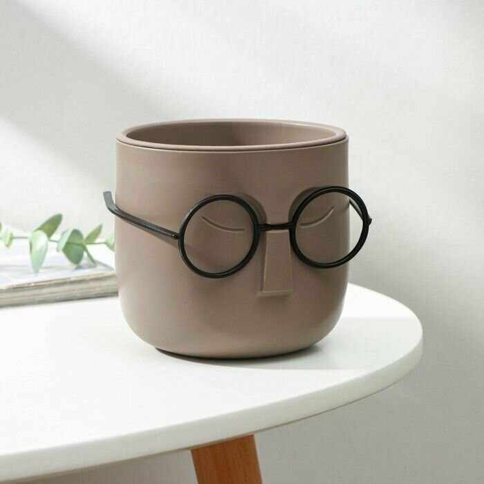 Купить Кашпо для цветов со вставкой "стив", 650 мл, d 11,5 см, h 10,5 см, цвет французский серый