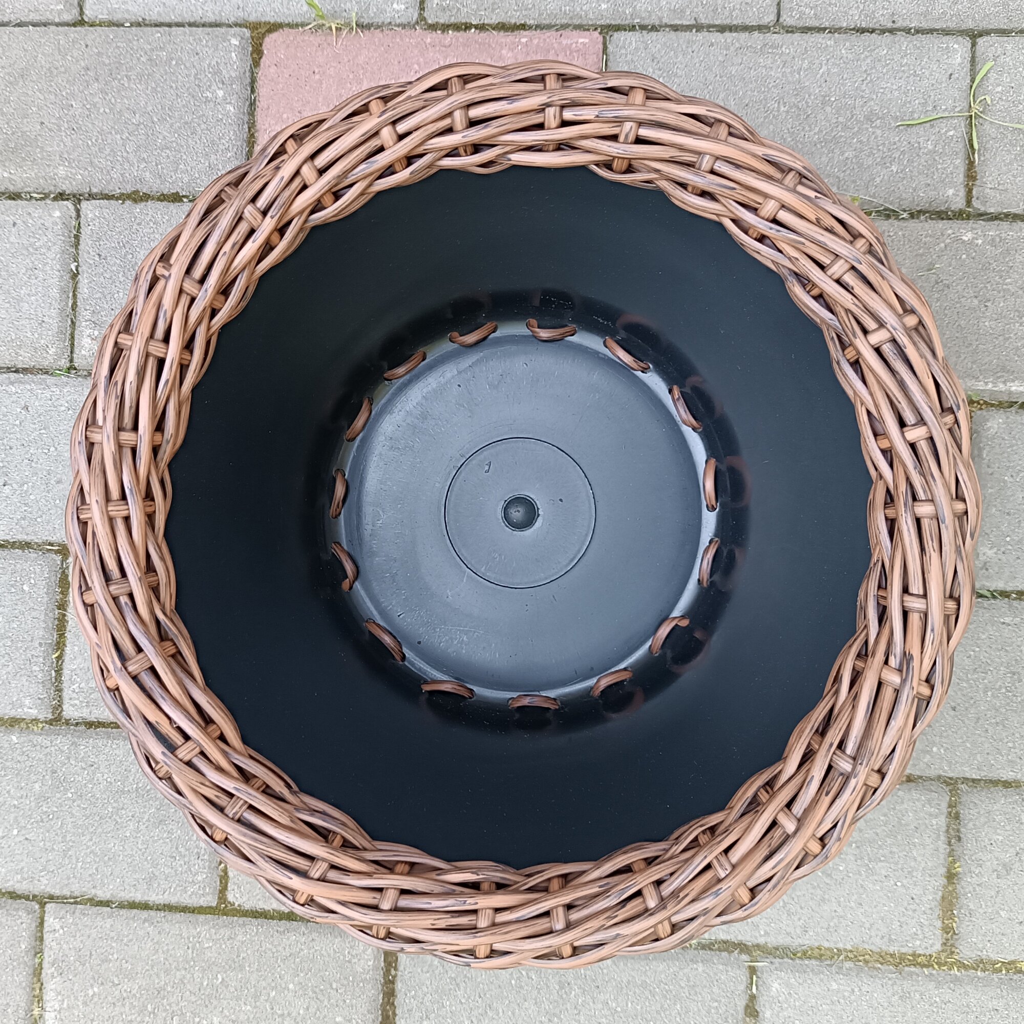 Кашпо для цветов уличное плетеное, цвет тёмно-серый, размер 34 см х 23 см