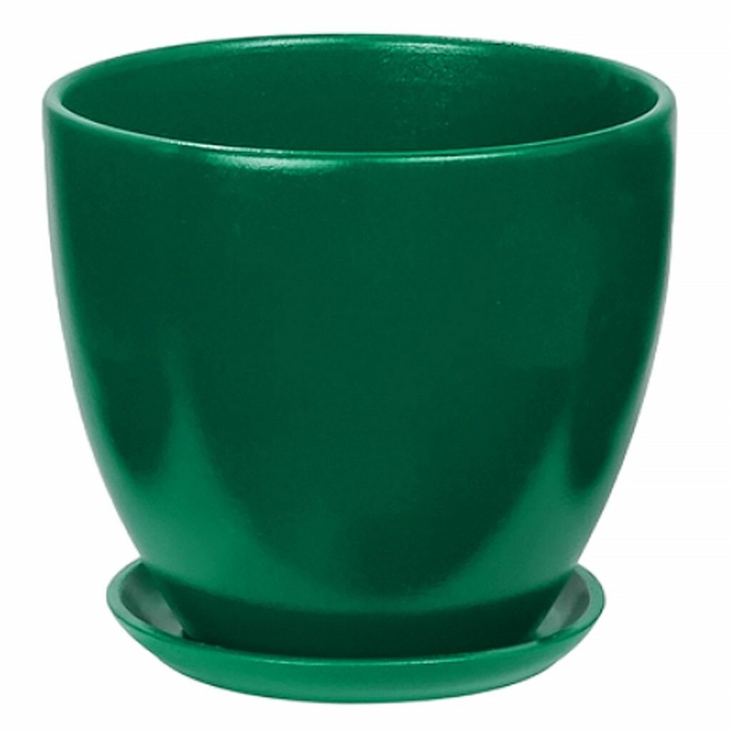 Купить Горшок для цветов керамический "Колор Гейм-3" 1,4л, д15см, h13см, форма "Высокий овал", с поддоном, зеленый