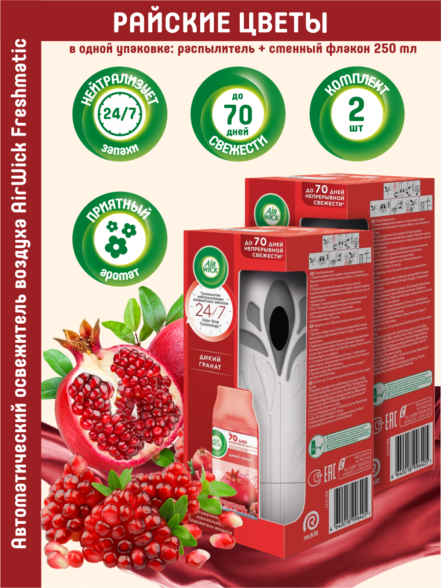 Автоматический освежитель воздуха Air Wick со сменным баллоном Дикий гранат 250 мл. х 2 шт.