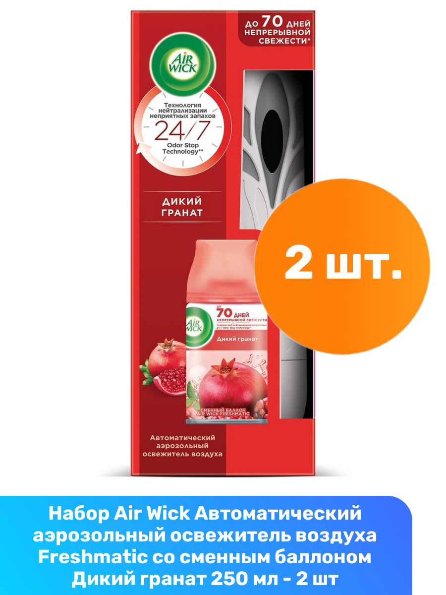 Air Wick Автоматический аэрозольный освежитель воздуха Freshmatic со сменным баллоном Дикий гранат 250 мл - 2 шт