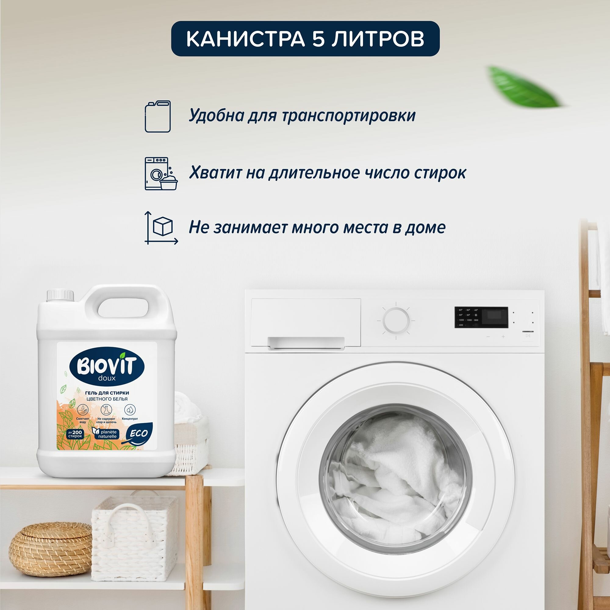 Гель для стирки 5л, BIOVIT, для цветного белья, концентрат интересное: