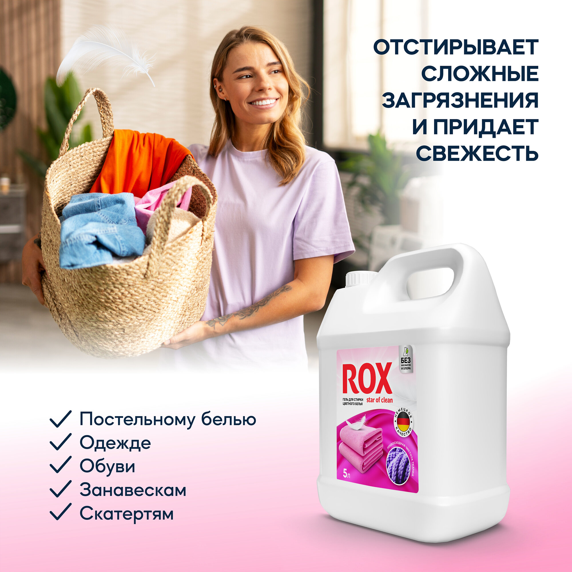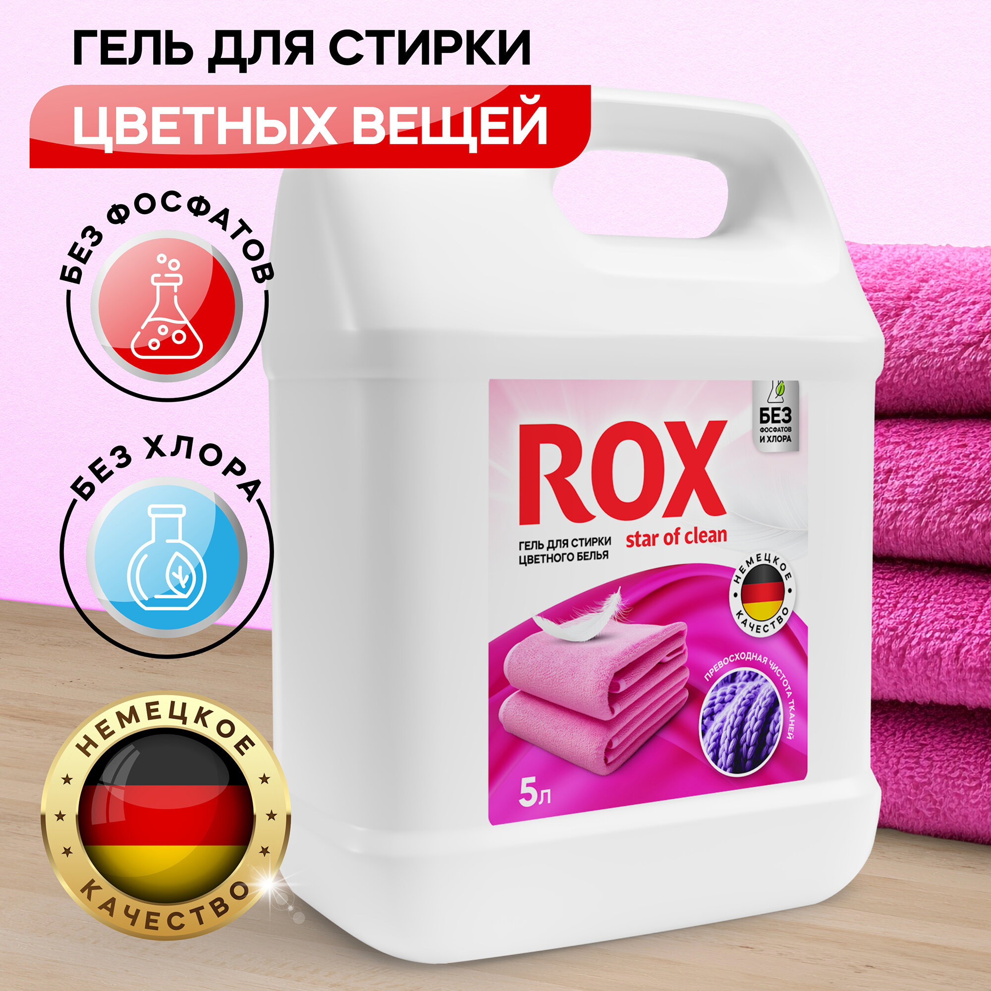 Гель для стирки 5л, ROX Star of clean, для цветного белья, концентрат интересное: