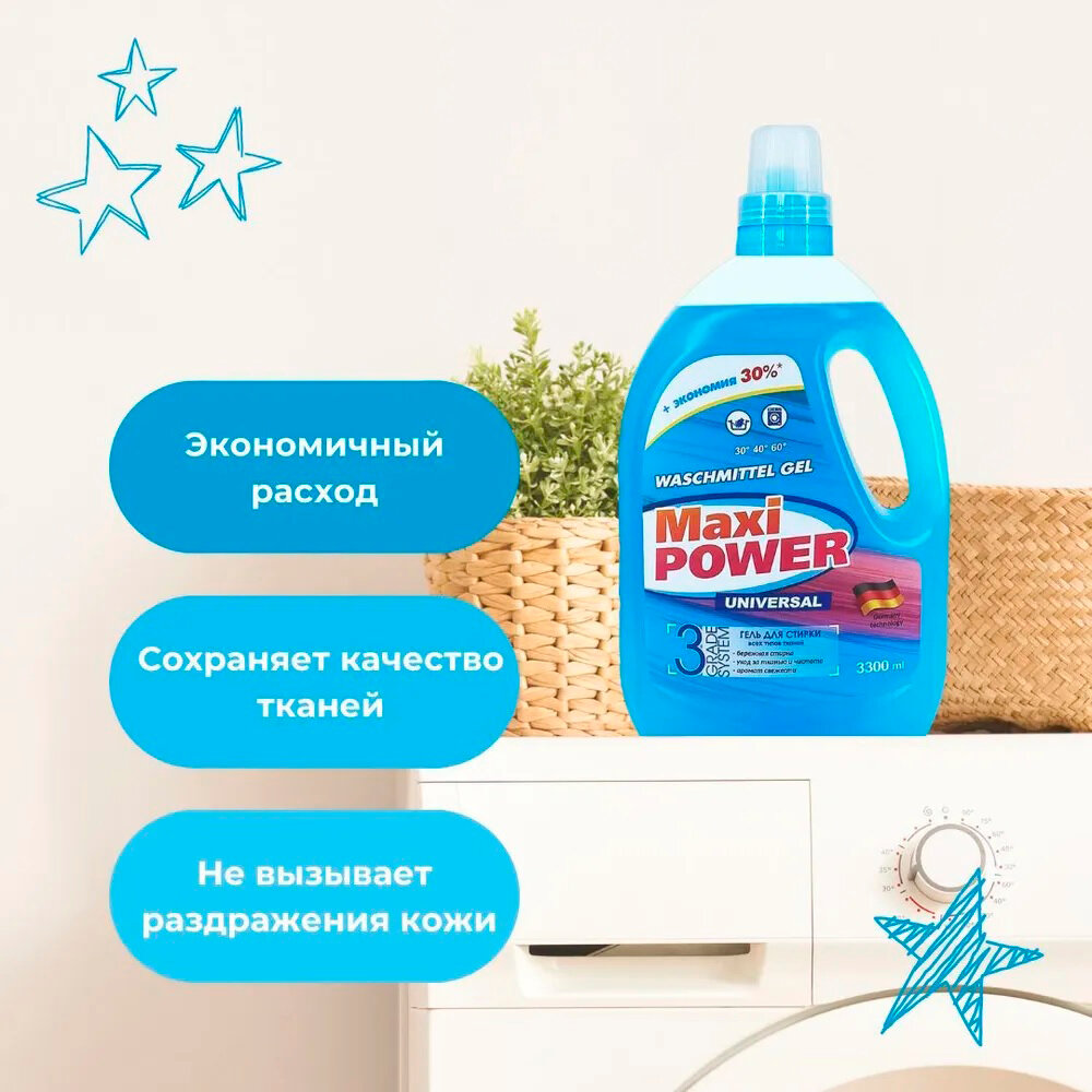 Купить Гель для стирки "Maxi Power" Universal, 3300мл