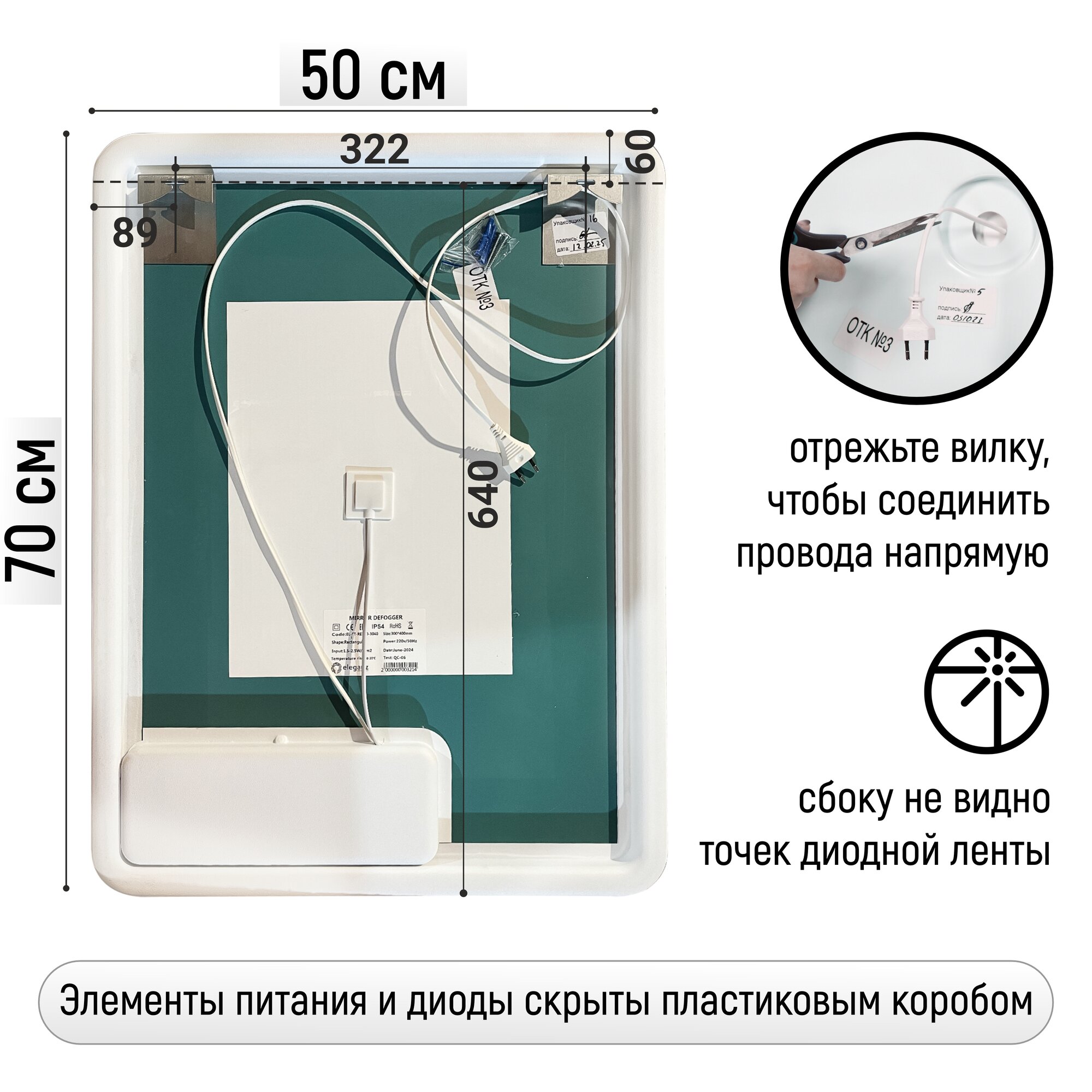 СохранитьЗеркало настенное в ванную с подсветкой и подогревом Milan 50*70 см (сенсорное управлением, прямоугольное зеркало для ванной, холодная подсветка 6000К) интересное: