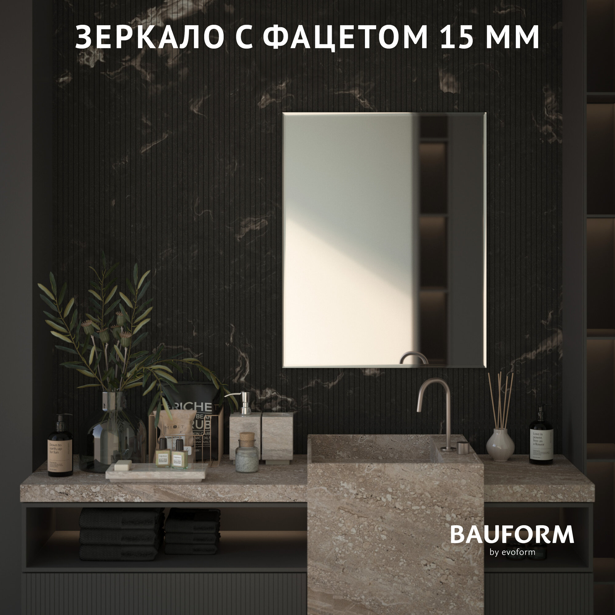 Купить Зеркало настенное Прямоугольное с фацетом FACET 15 BAUFORM 80х100 см, для гостиной, прихожей, спальни, кабинета и ванной комнаты, SP 9066