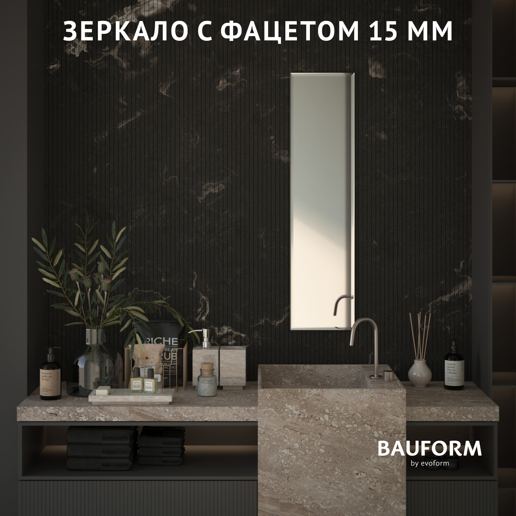 СохранитьЗеркало настенное Прямоугольное с фацетом FACET 15 BAUFORM 40х120 см, для гостиной, прихожей, спальни, кабинета и ванной комнаты, SP 9062 интересное: