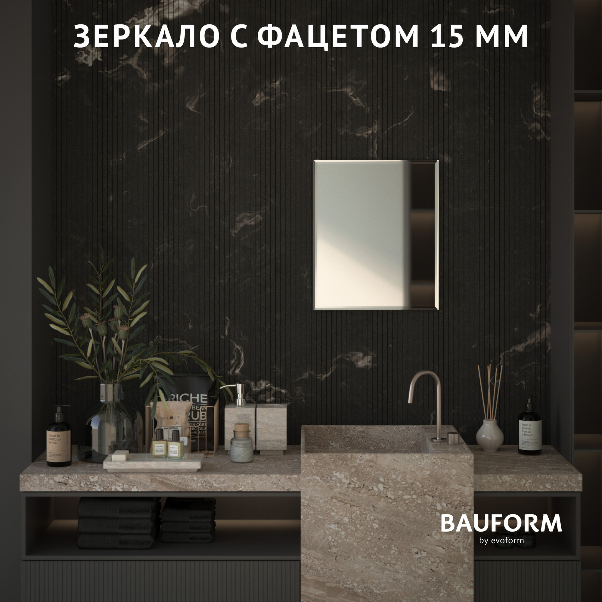 СохранитьЗеркало настенное Прямоугольное с фацетом FACET 15 BAUFORM 50х60 см, для гостиной, прихожей, спальни, кабинета и ванной комнаты, SP 9091 интересное: