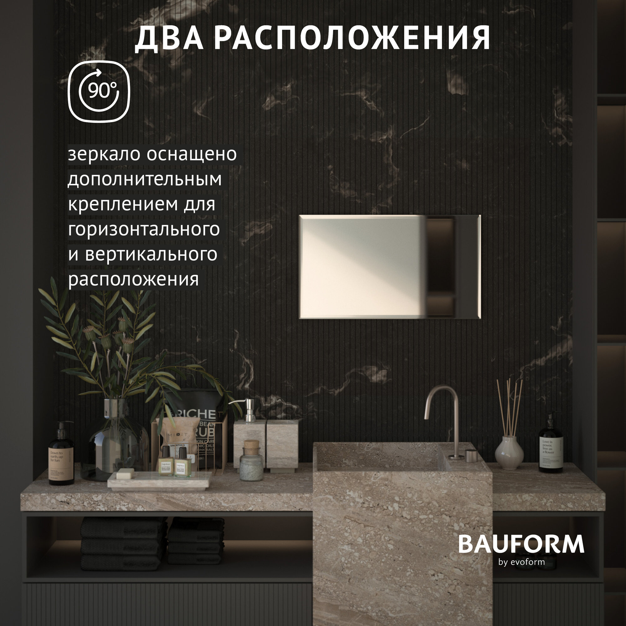 Зеркало настенное Прямоугольное с фацетом FACET 15 BAUFORM 60х80 см, для гостиной, прихожей, спальни, кабинета и ванной комнаты, SP 9081