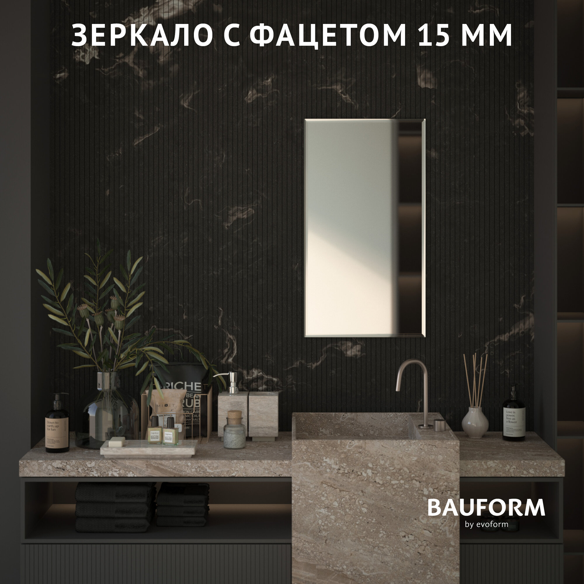 Зеркало настенное Прямоугольное с фацетом FACET 15 BAUFORM 50х60 см, для гостиной, прихожей, спальни, кабинета и ванной комнаты, SP 9091