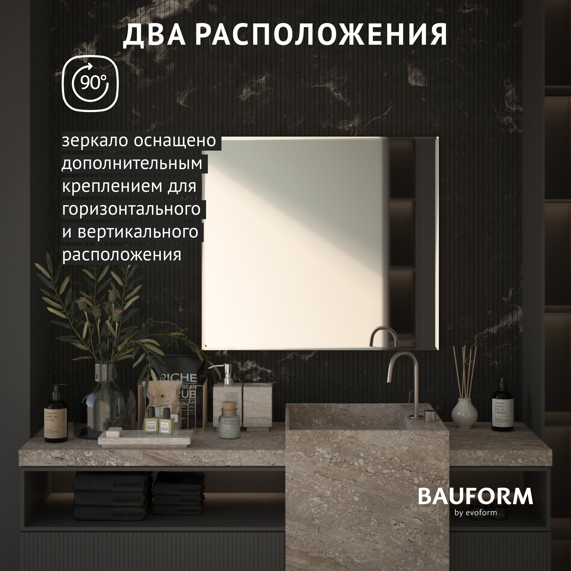 Зеркало настенное Прямоугольное с фацетом FACET 15 BAUFORM 70х80 см, для гостиной, прихожей, спальни, кабинета и ванной комнаты, SP 9080