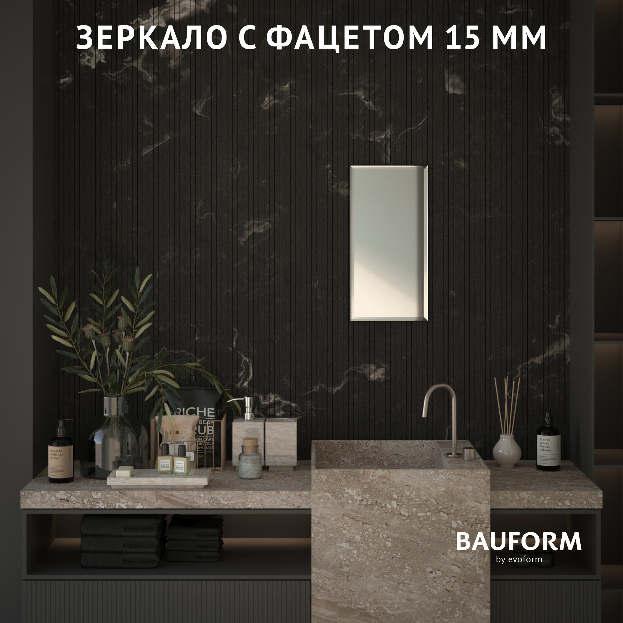 СохранитьЗеркало настенное Прямоугольное с фацетом FACET 15 BAUFORM 30х60 см, для гостиной, прихожей, спальни, кабинета и ванной комнаты, SP 9093 интересное:
