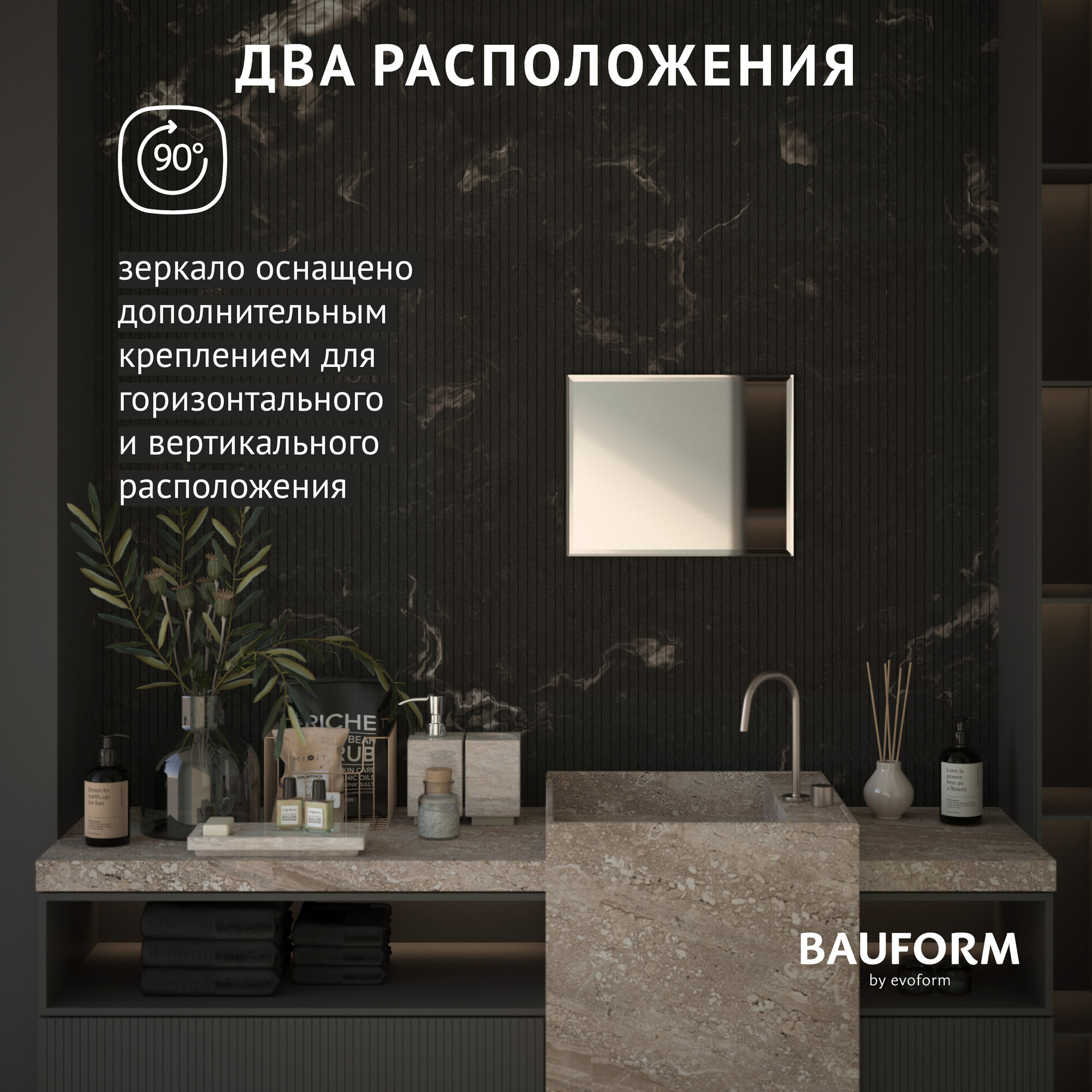 Зеркало настенное Прямоугольное с фацетом FACET 15 BAUFORM 70х80 см, для гостиной, прихожей, спальни, кабинета и ванной комнаты, SP 9080