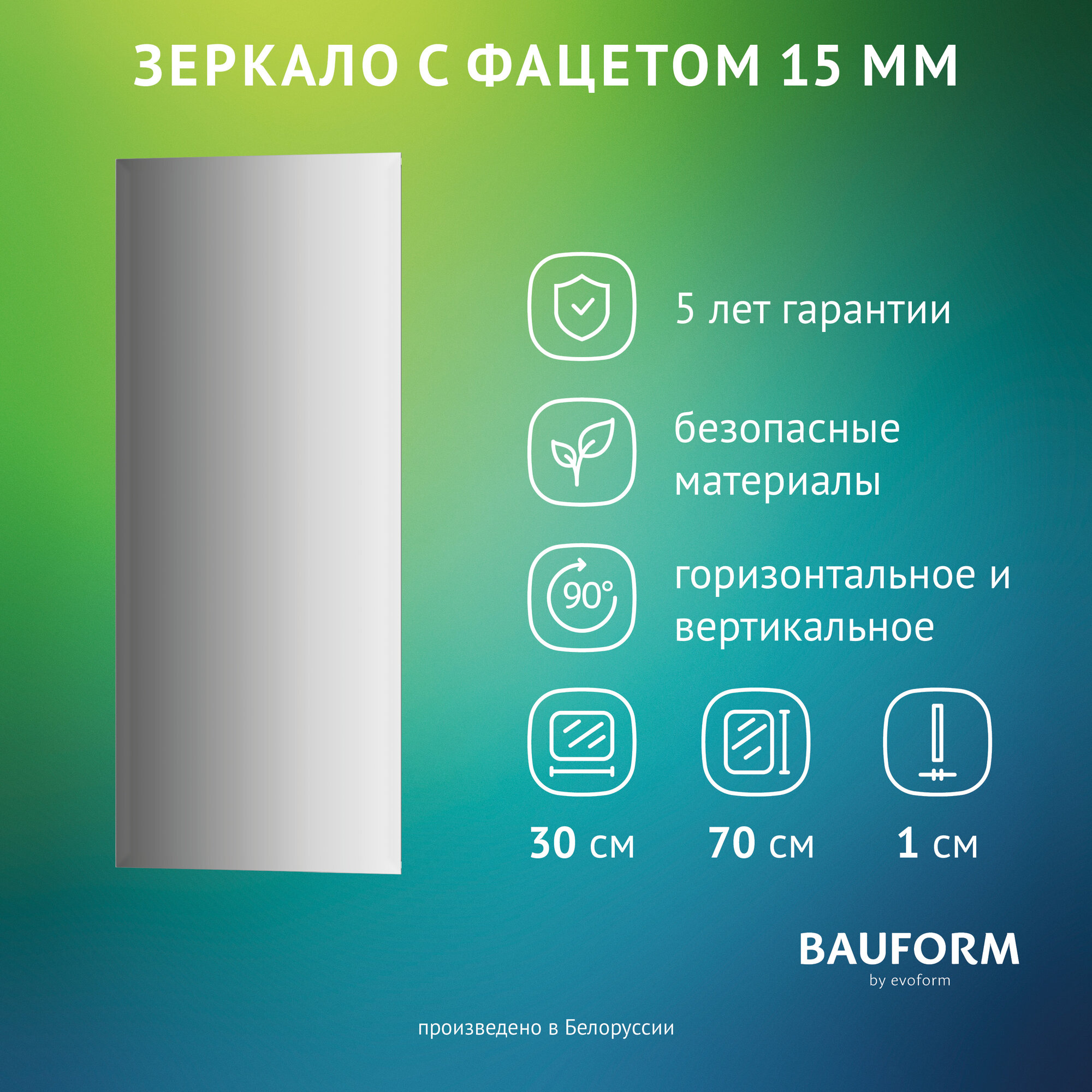 Купить Зеркало настенное Прямоугольное с фацетом FACET 15 BAUFORM 30х70 см, для гостиной, прихожей, спальни, кабинета и ванной комнаты, SP 9089