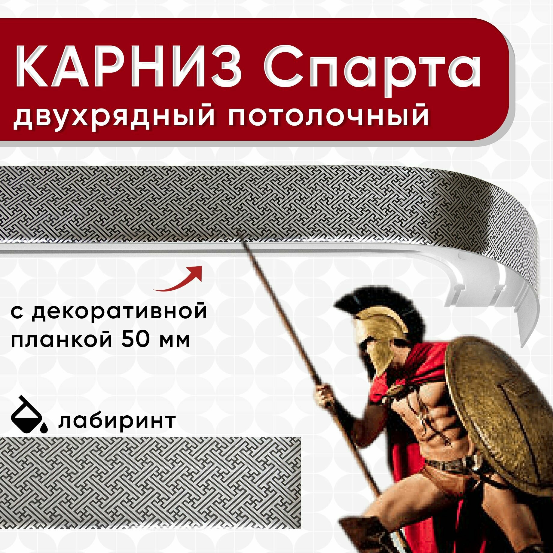 Карниз УЮТ двухрядный потолочный с декоративной планкой (бленда 50мм), пластмассовый, шинный Спарта лабиринт 160см