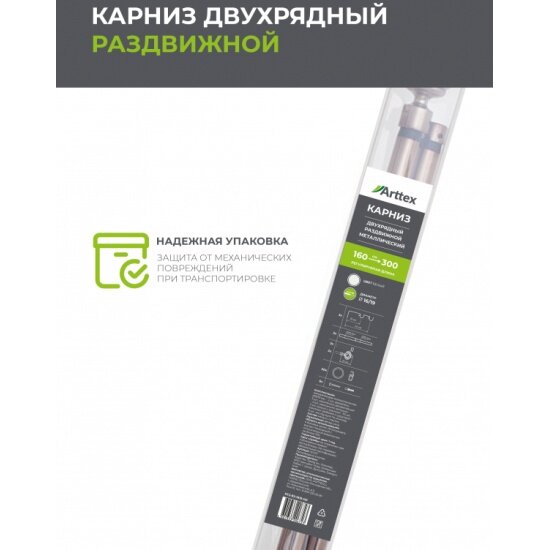 Карниз металлический Arttex Телескоп двухрядный 15.592 диаметр 16/19, сталь, 160/300