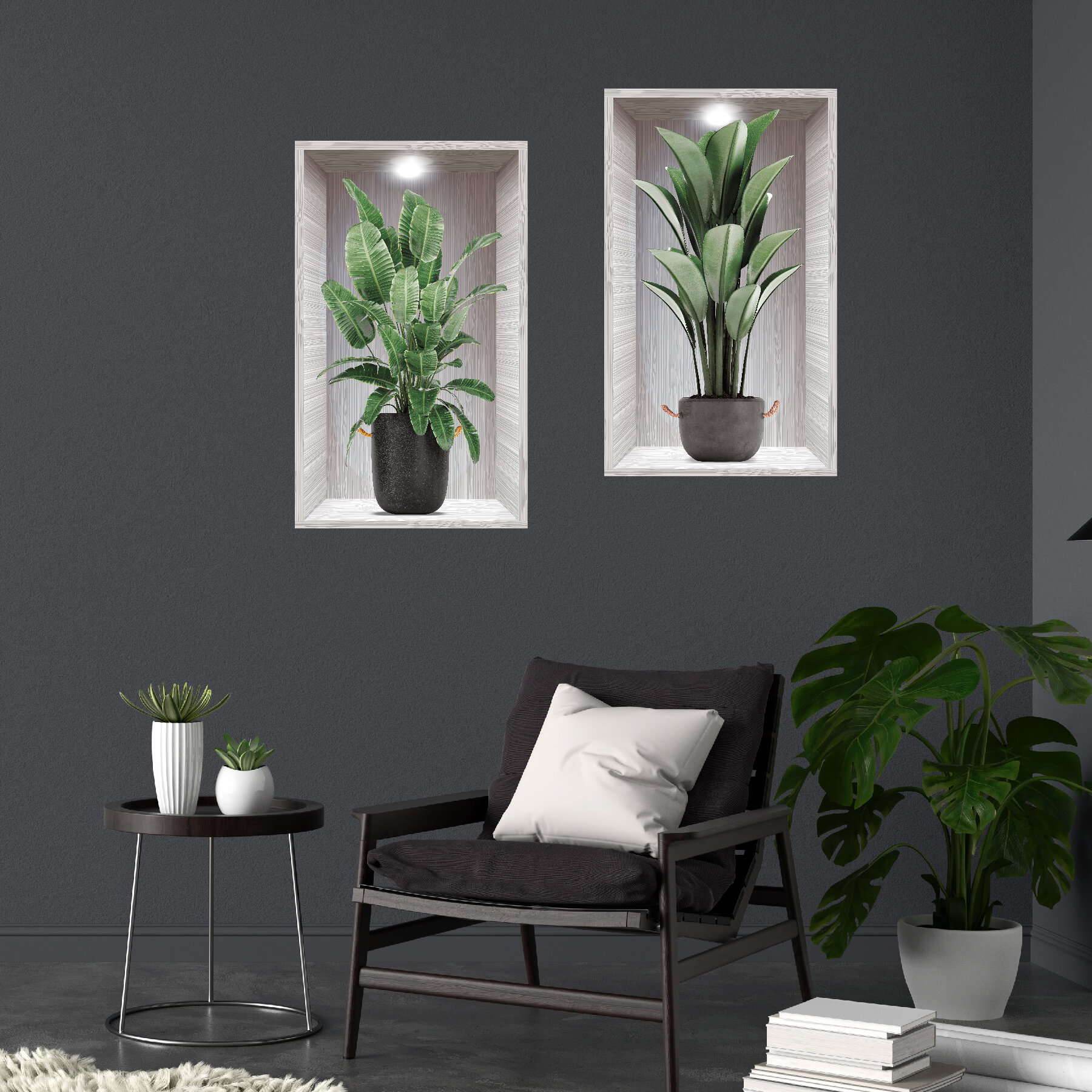 Интерьерные наклейки на стену в гостинную цветы в горшках