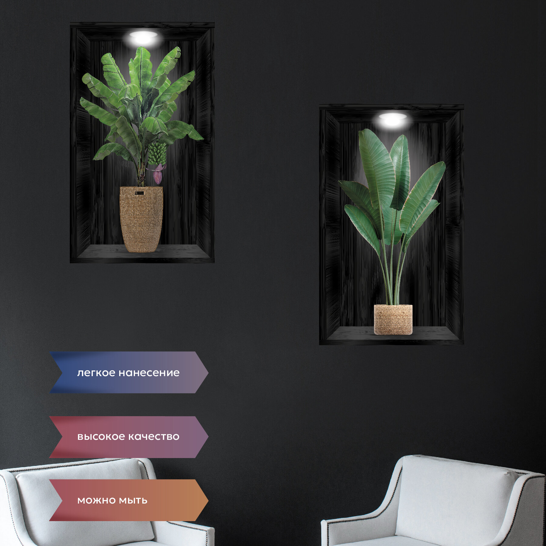 Купить Набор из 2-х декоративных наклеек для дома и офиса "Комнатные цветы"