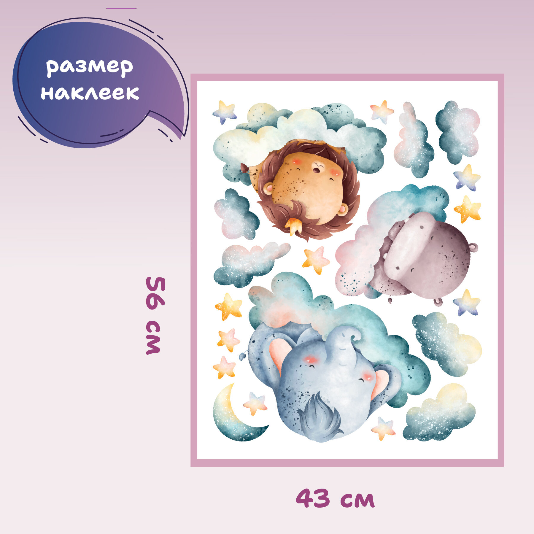 Купить Красивые интерьерные детские наклейки для стен в помещении с животными и облаками