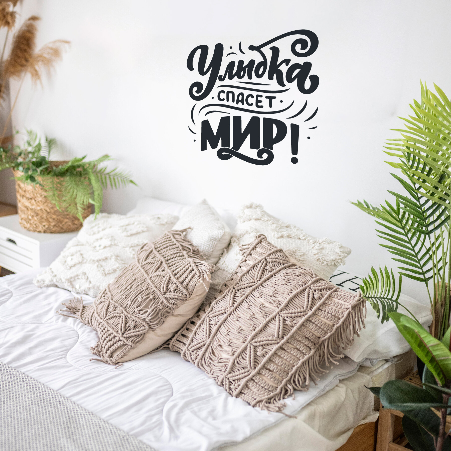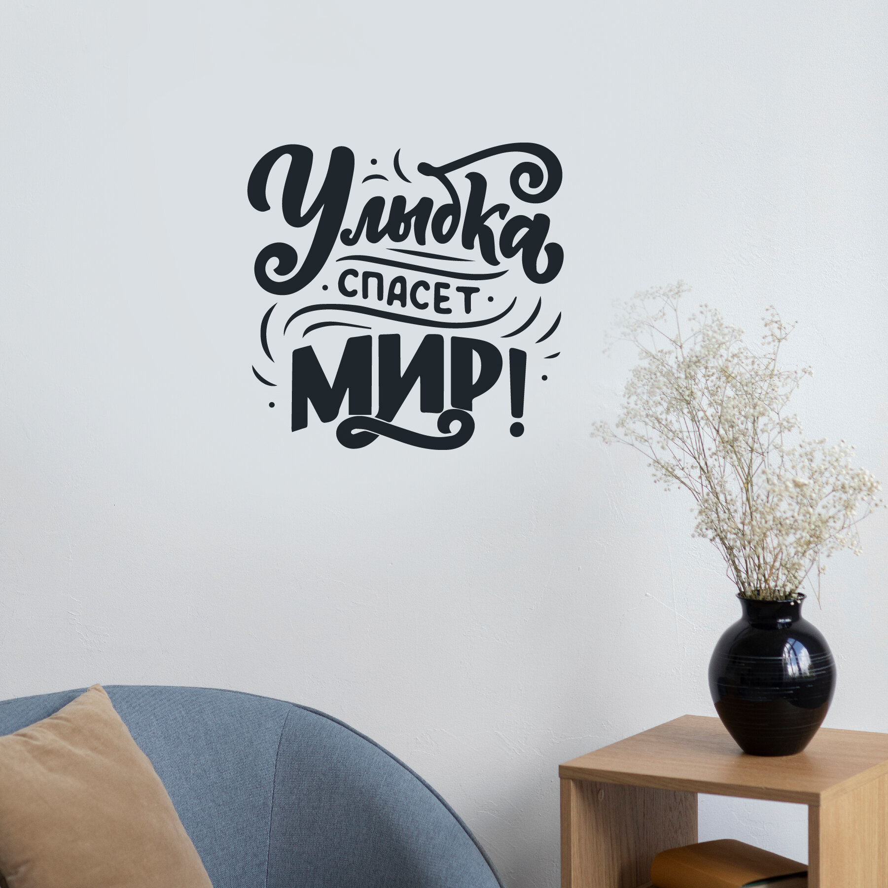 Купить Интерьерные декоративные наклейки с надписями для интерьера улыбка спасет мир