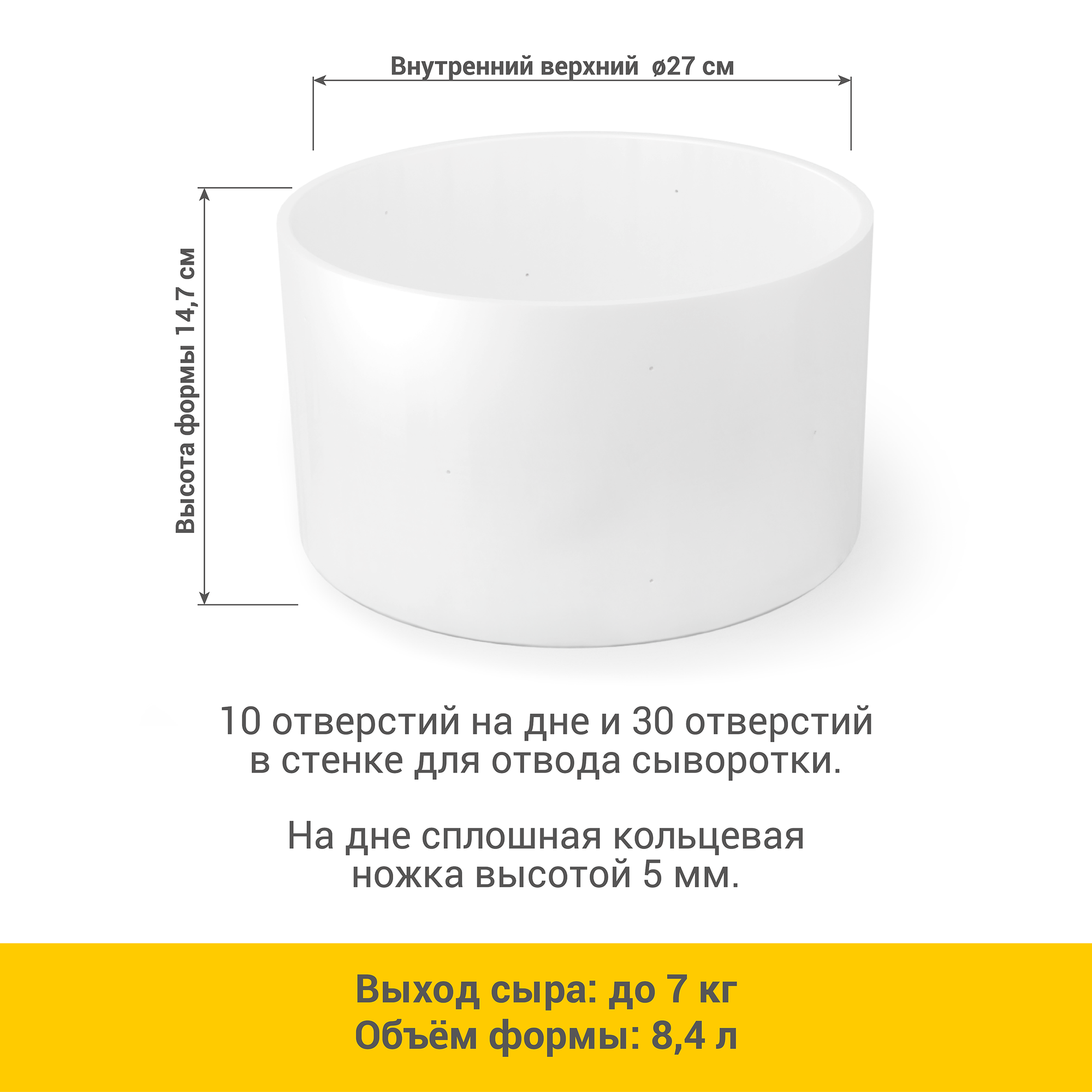 Форма для приготовления домашнего твердого сыра 2,5 кг с поршнем