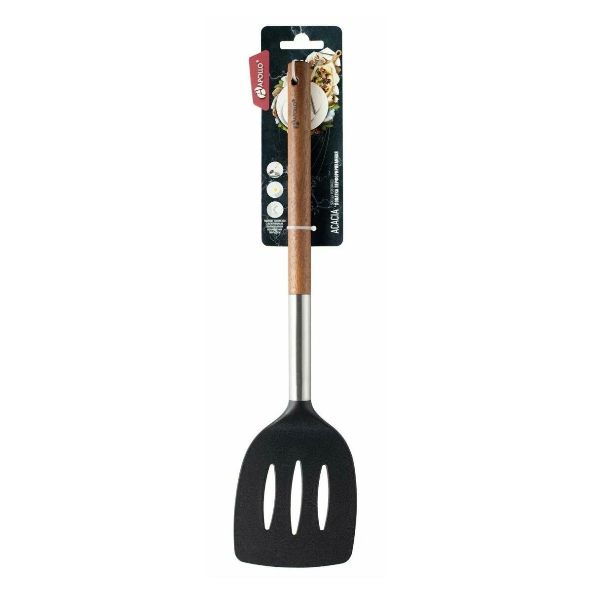 Лопатка APOLLO Acacia 37см перфорированная нейлон, нерж.сталь, дерево акация интересное: