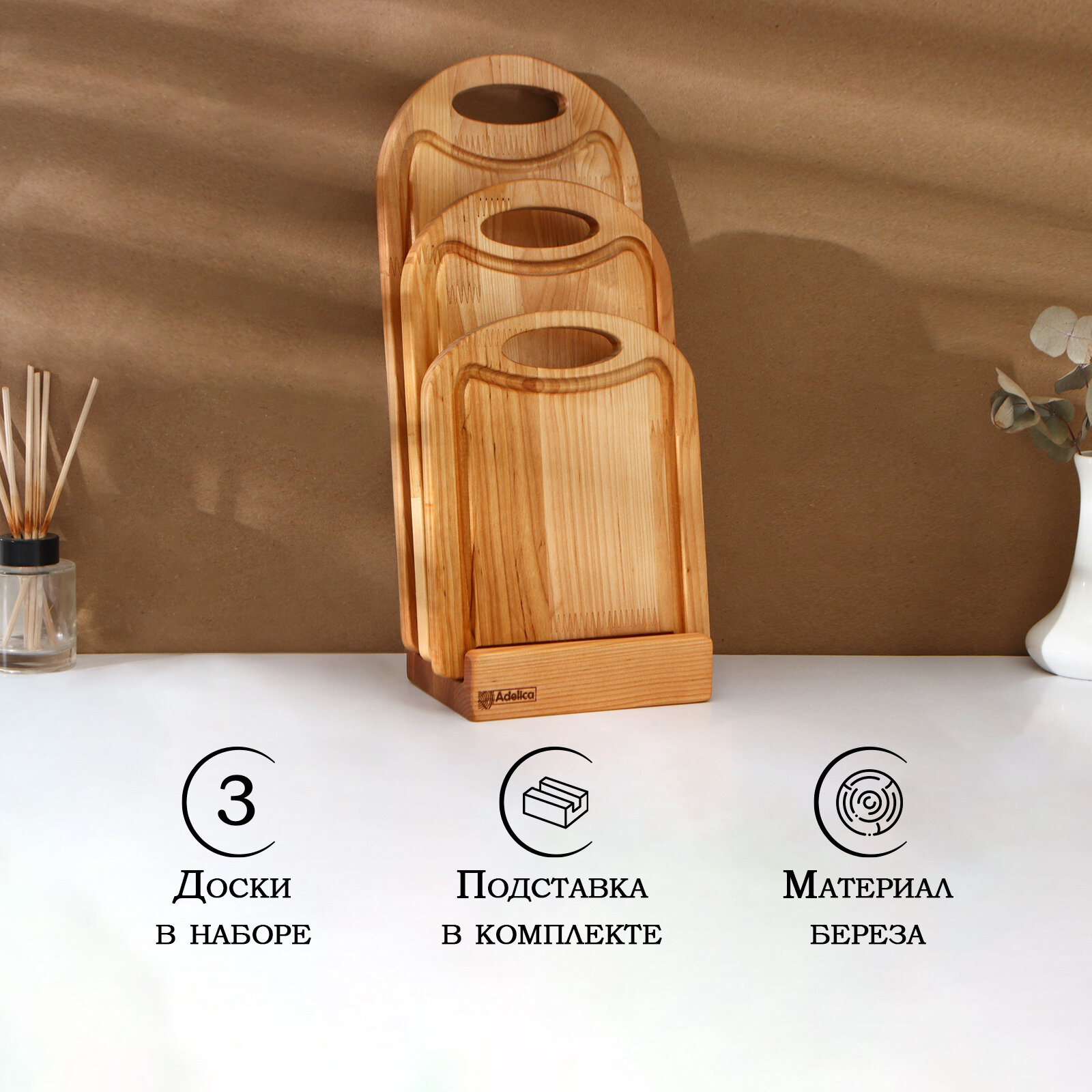 Набор разделочных досок на подставке Adelica, 3 шт: 38×18, 30×18, 22×18 см, берёза