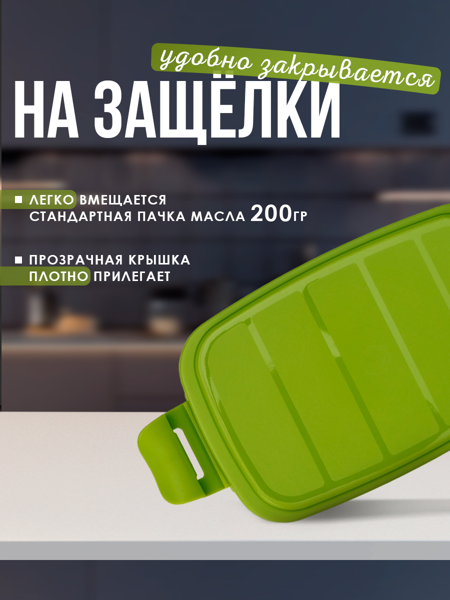 Масленка для сливочного масла «Летиция», с крышкой, на защелках, 16,3×10,1×6,5 см, цвет оливковый