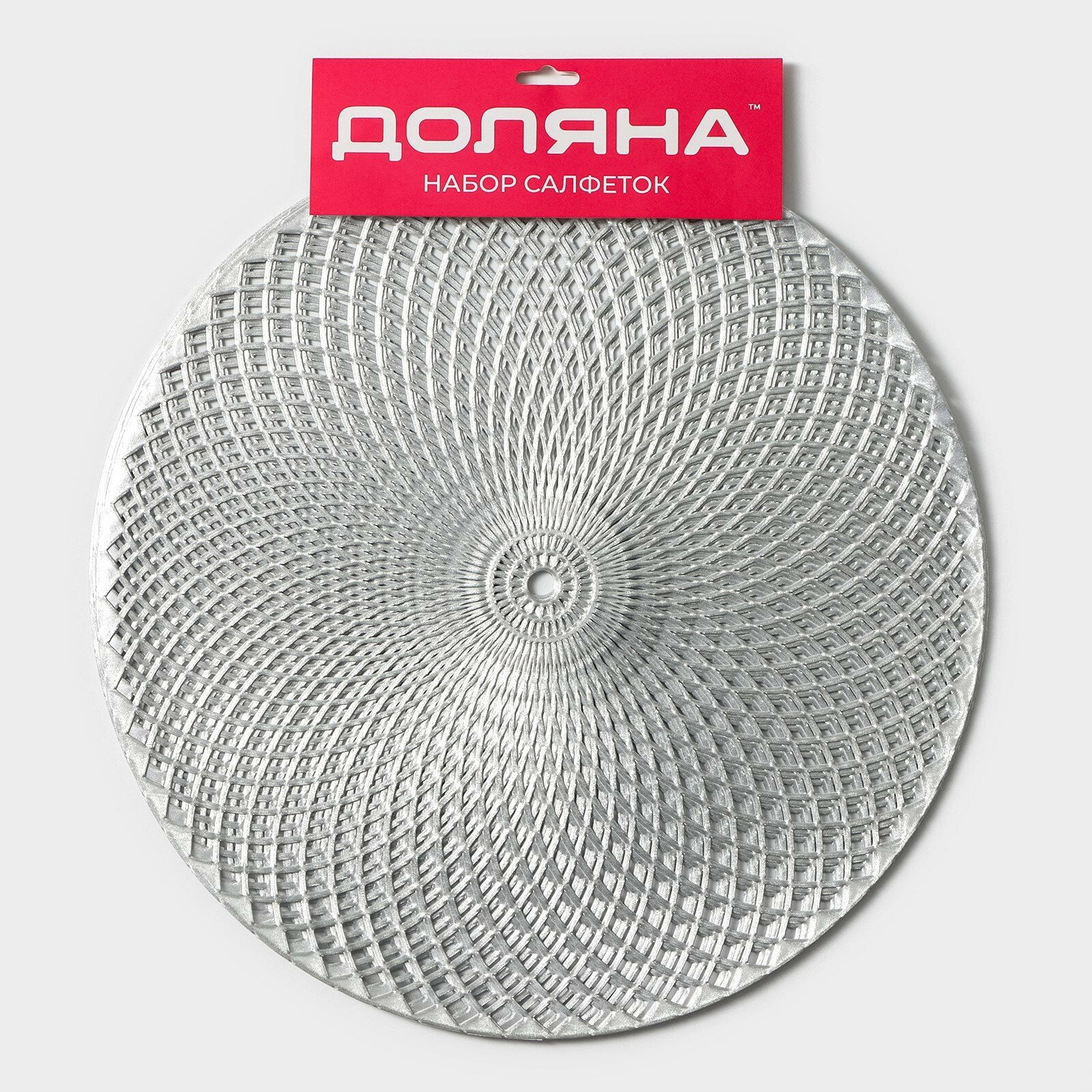 Набор салфеток сервировочных на стол Доляна «Вира», 4 шт, d=38 см, цвет серебряный