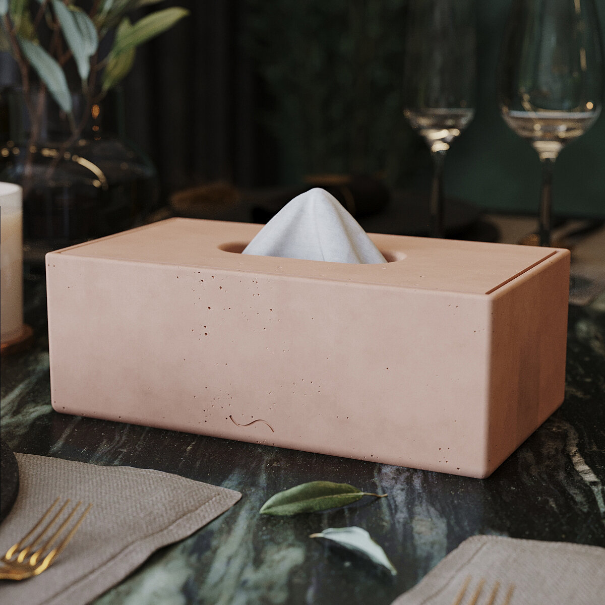 Купить Салфетница интерьерная Helen с крышкой, 24x8.5x13 см, бетон, розовая матовая