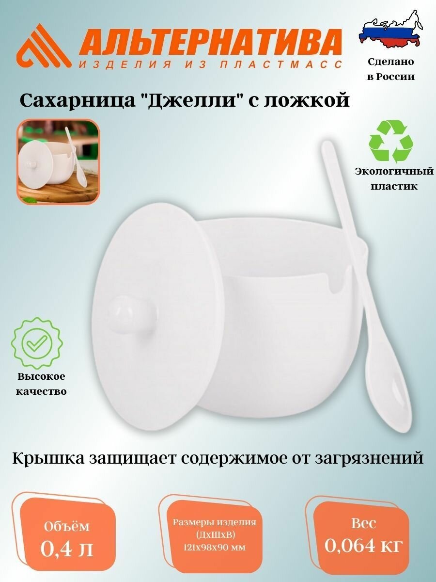 Сахарница "Джелли", с крышкой и ложечкой, 0.4 л, белый, Альтернатива